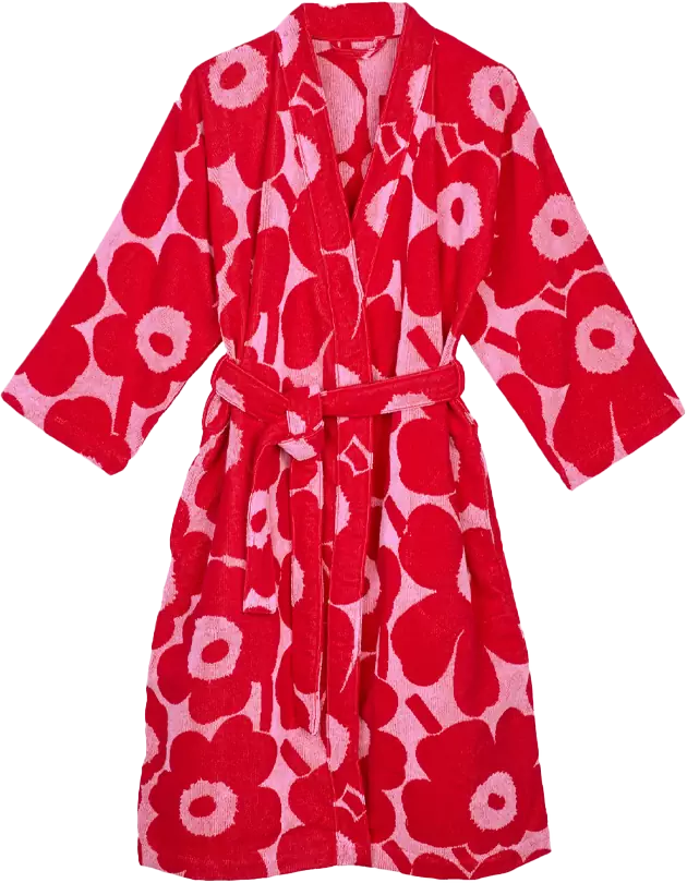Marimekko €199Узнаваемый принт Unikko, придуманный для Marimekko художницей Майей Исолой, воплотился в мягком и уютном банном халате. Выполненный из органического хлопка, он дополнен вместительными боковыми карманами и поясом.