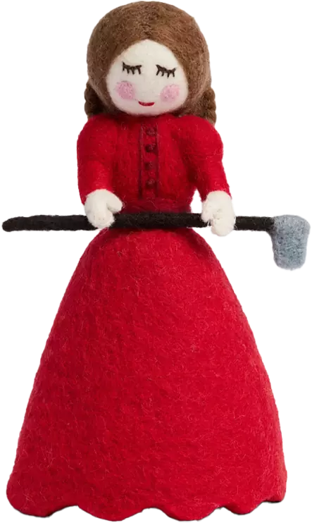 А24Films $48Елочная игрушка «Перл» от студии A24 — фигурка высотой 25 см, выполненная вручную из валяной шерсти. Она изображает Мию Гот в красном платье. В комплект входит миниатюрный топорик. Рождественская верхушка вдохновлена слэшером Тая Уэста.