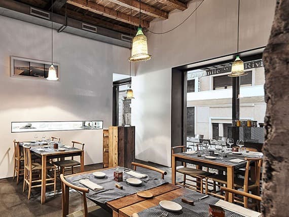 Мишленовский ресторан на заброшенной лесопилке в районе Навильи. Ответственная за дизайн Таня Сольчи почти полностью сохранила обстановку заброшенного индустриального цеха и ограничилась несколькими хрустальными люстрами над длинными белыми столами. Ресторан не новый, открылся в 2014 году, но по-прежнему интересный.