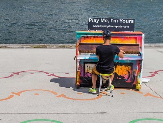 Play me, I’m yours – международный проект британского художника Люка Джеррама, путешествующий по миру с 2008 года. На несколько дней улицы Парижа от террасы галереи Лафайет до парка Бийанкур украсят более двадцати пианино, декорированных местными художниками, на которых любой прохожий сможет выразить свою любовь к музыке и искусству.