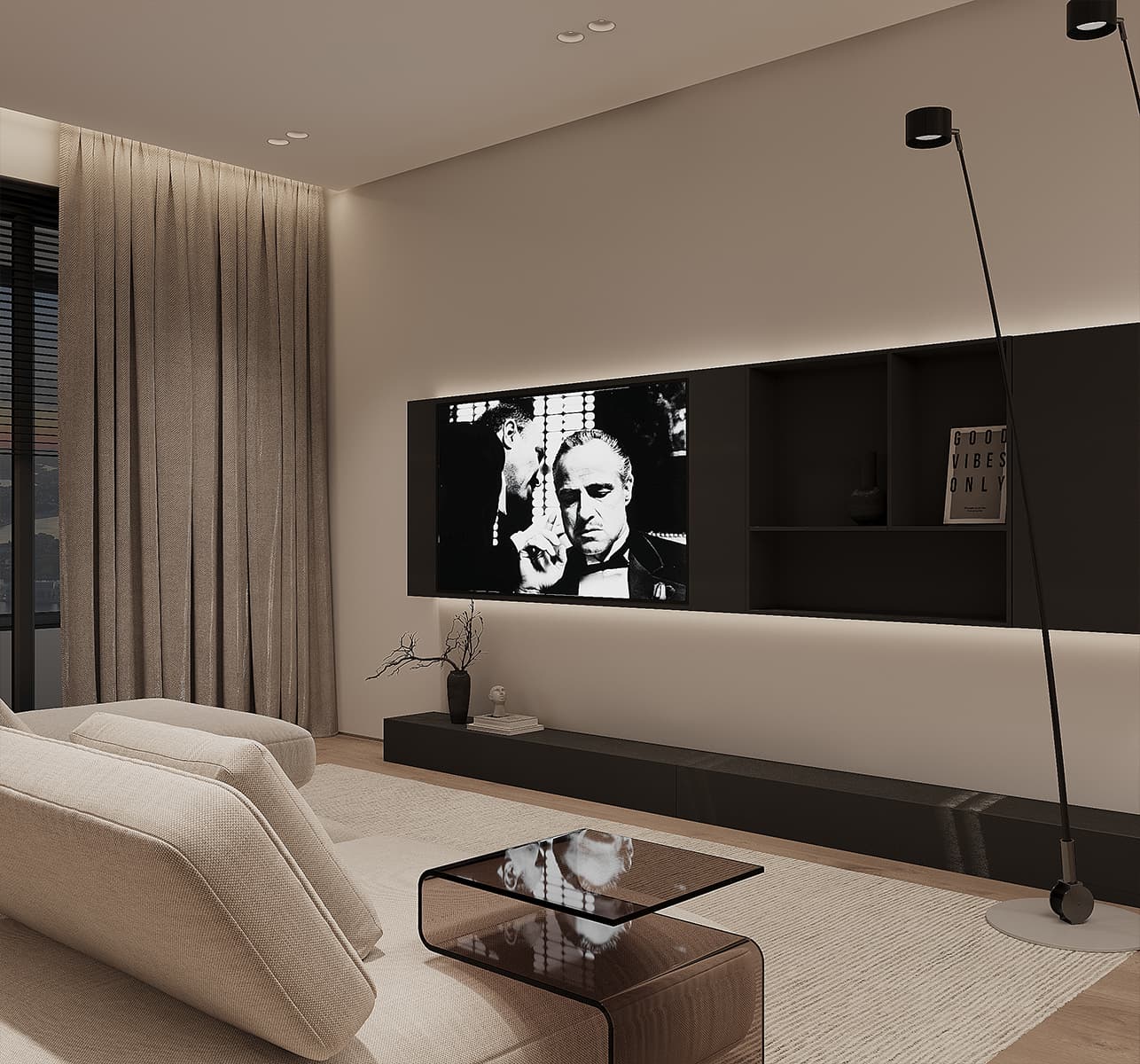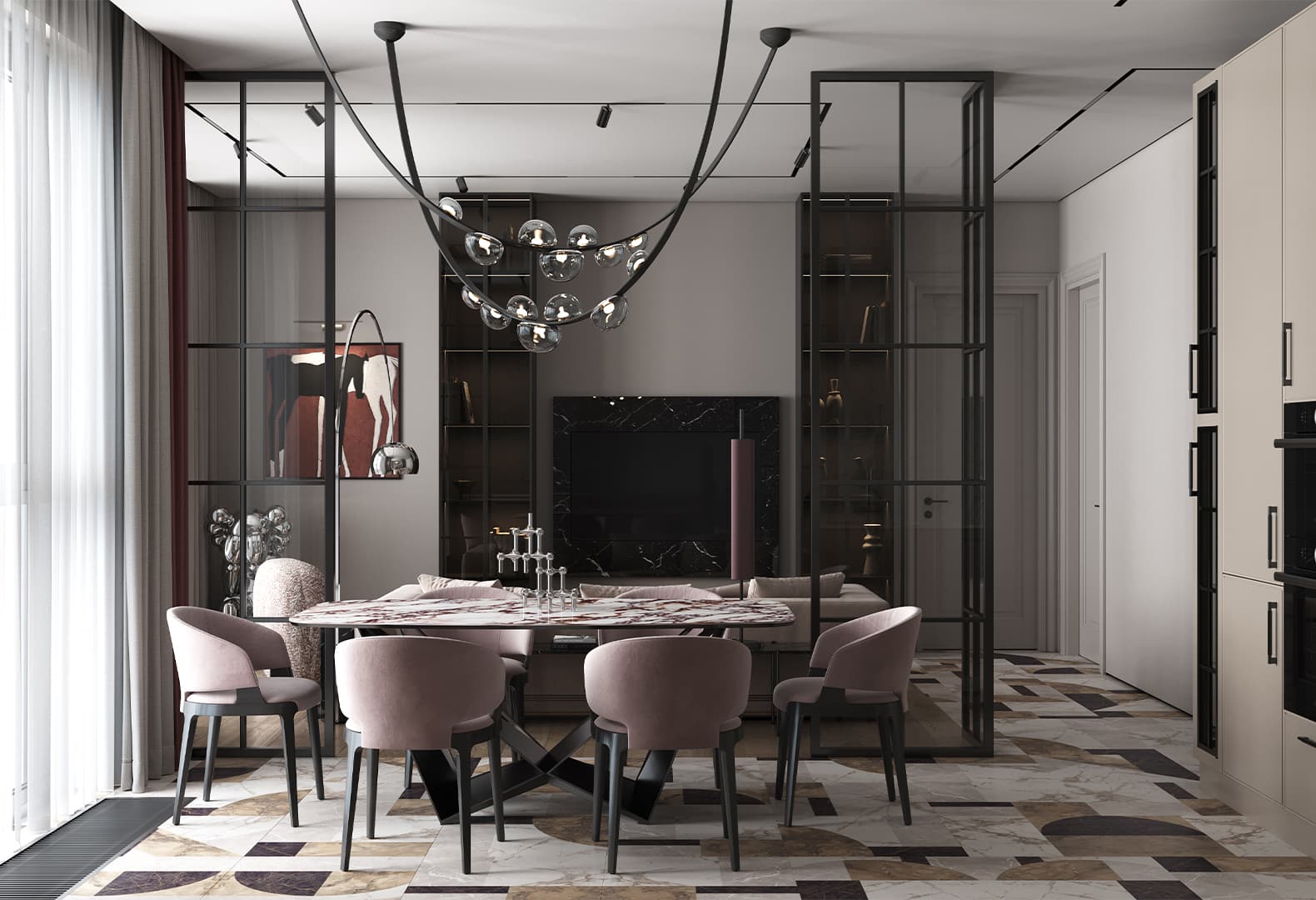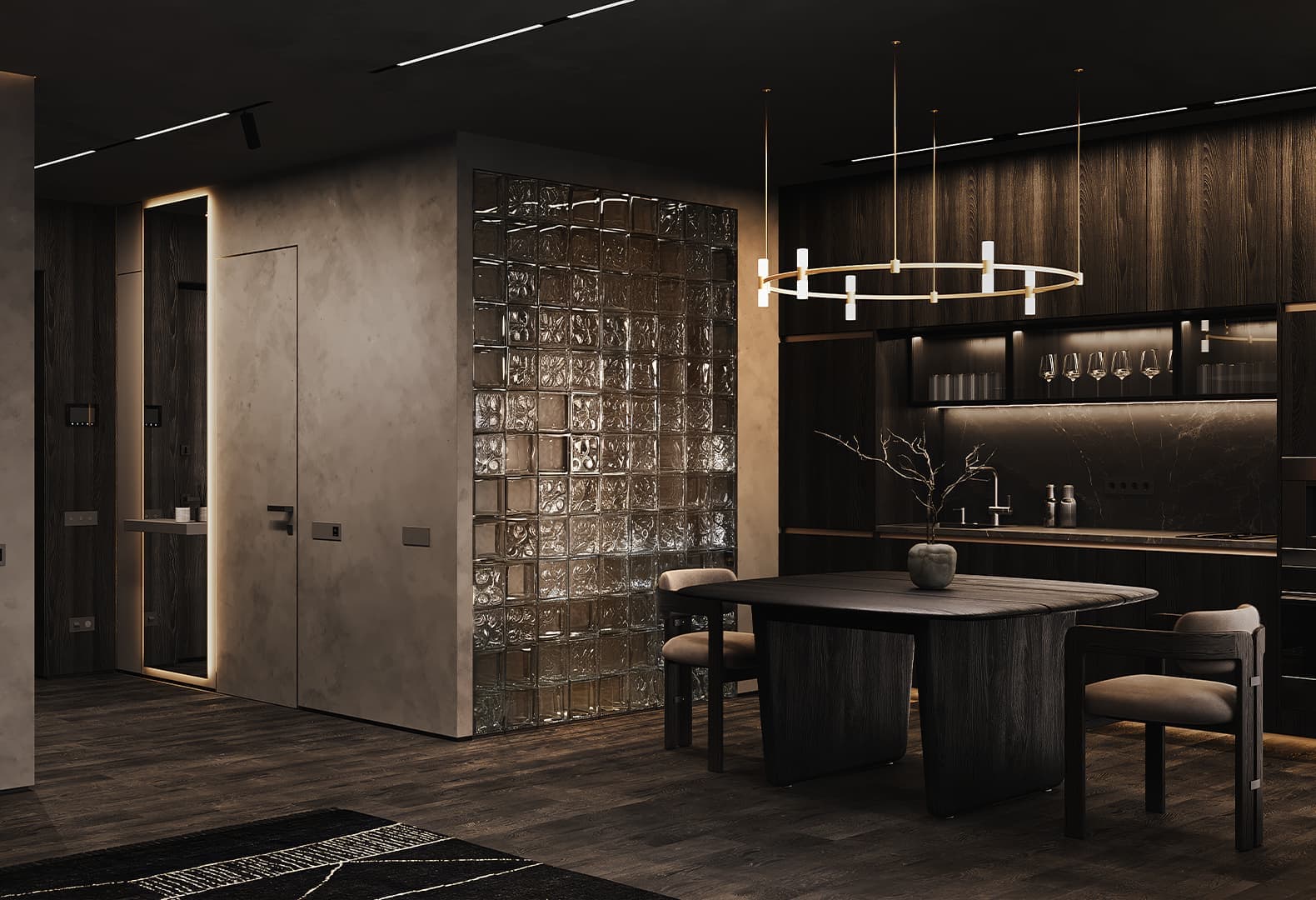Дизайнер стремилась создать уютное, технологичное и вместе с тем персонализированное пространство для современного человека, для которого эстетика не менее важна, чем практичность и комфорт. Источником вдохновения автора выступила игра света на стекле: этот образ воплотился в чувственных формах и изысканных сочетаниях цвета и фактуры. Концепция опирается на идею эмоциональной связи человека с пространством: по задумке Анны Букиной, цветовая гармония и взаимодействие материалов в ее интерьере формируют комфортную обстановку не только на физическом, но и на психологическом уровне.