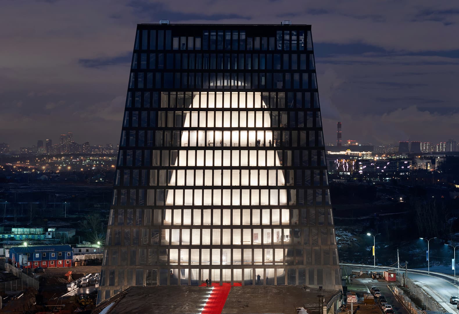 Днем здание выглядит как стеклянная усеченная пирамида, а облик матрешки проявляется с наступлением сумерек. Узнаваемая форма традиционной русской игрушки становится видна внутри стеклянной пирамиды благодаря освещению внутреннего пространства атриума. Для освещения «тела» матрешки используются светильники со специальной оптикой, которая позволяет избежать слепящего света и создает эффект «выключенного света», когда световые приборы работают. Равномерно освещенные стены на каждом этаже внутреннего пространства атриума складываются в масштабную форму матрешки, которую видно с улицы через остекление фасада.