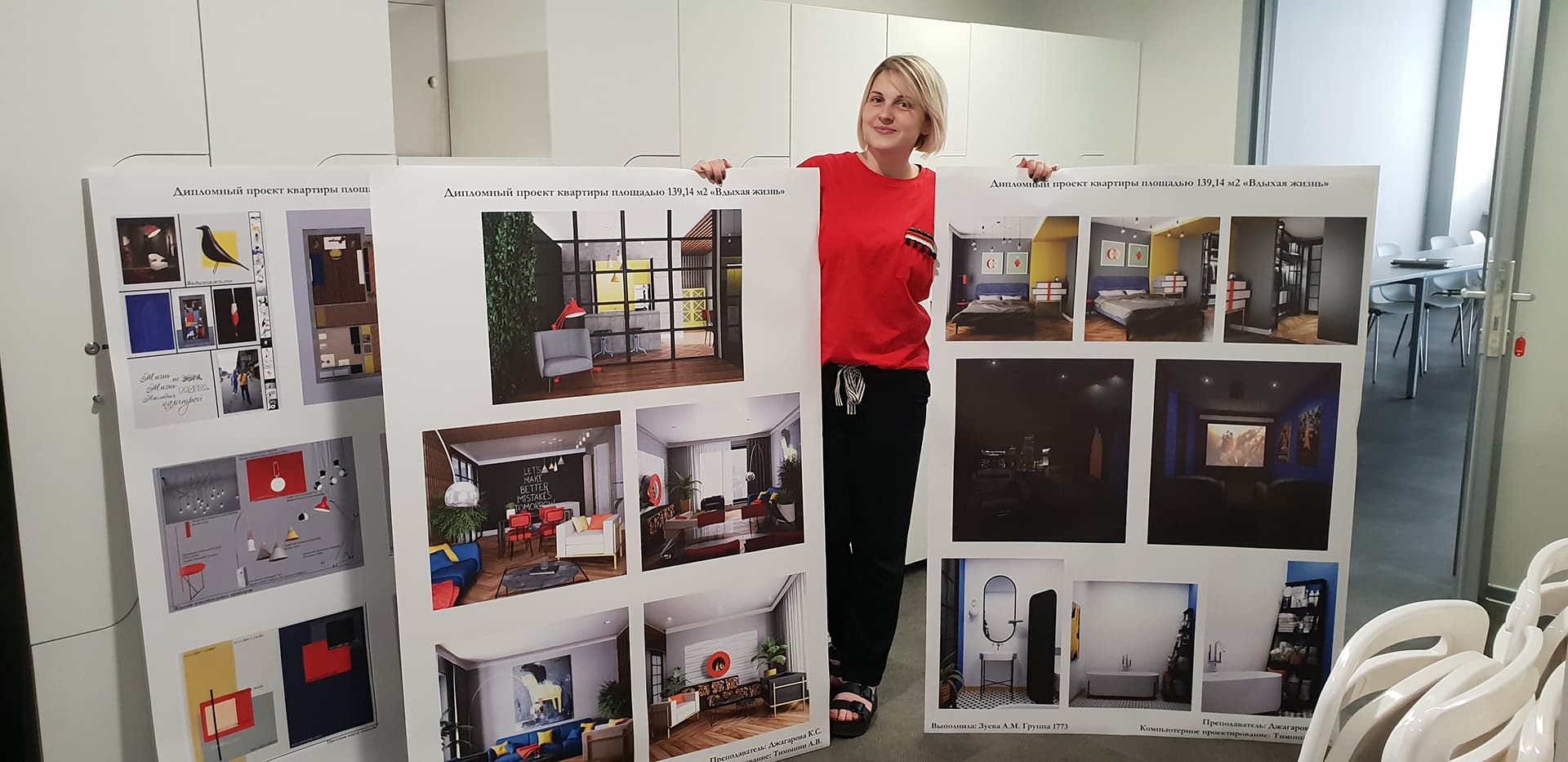 Сегодняшним студентам я желаю не бояться раскрывать себя. Нужно чувствовать то, что внутри. Работа в сфере дизайна — это колоссальный труд, выдержка и самообладание. Нужно уметь слышать и слушать других. Я бы даже сказала, что дизайнер — это в первую очередь психолог или «лучшая подружка» для своих клиентов, так как эта профессия предполагает очень тесное общение на протяжении нескольких лет.