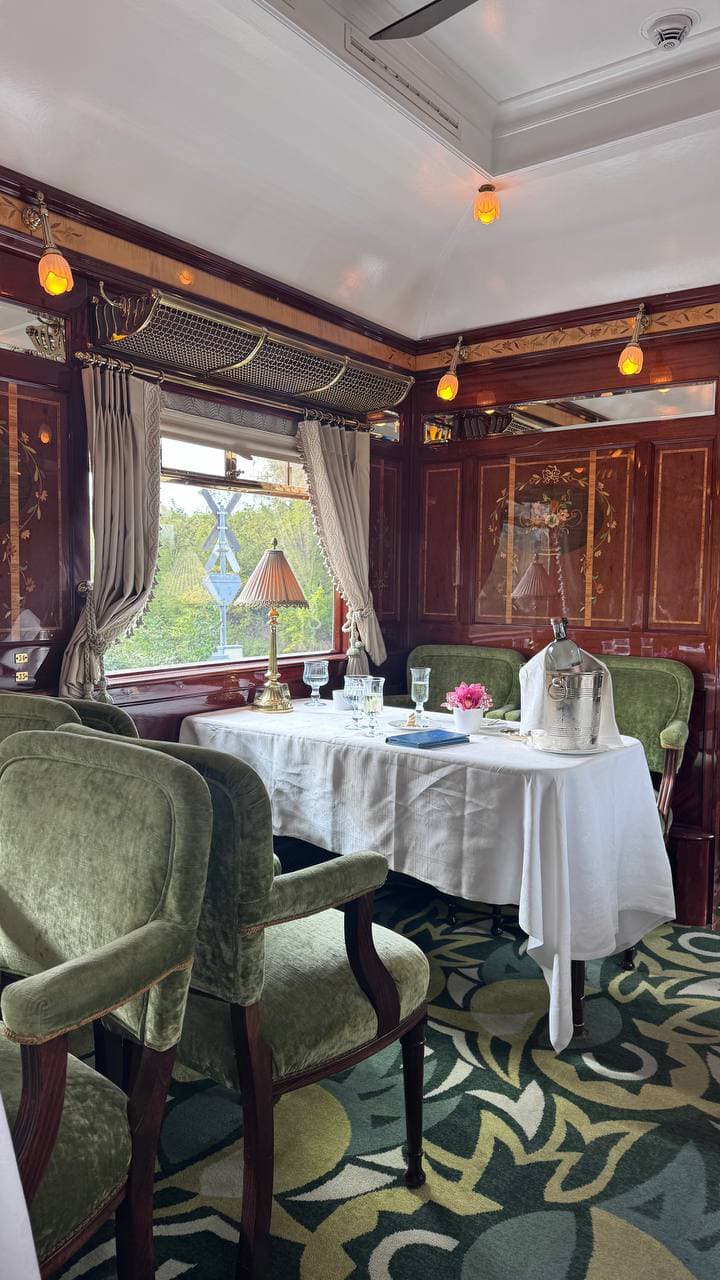 Второй ресторан, Étoile du Nord, почти как музей со своей уникальной историей. Построенный в Бирмингеме в 1926 году, вагон Étoile du Nord начал свой путь по маршруту Париж – Амстердам, затем ходил в составе Edelweiss, после чего оказался в Румынии сначала в составе Дунайского экспресса, а затем в легендарном Rapid King Carol I. Спустя десятилетия вагон выкупили и бережно отреставрировали для Venice Simplon-Orient-Express, сохранив его знаменитое цветочное маркетри из редких шпонов. Атмосфера здесь более сдержанная, но история как будто витает в воздухе.