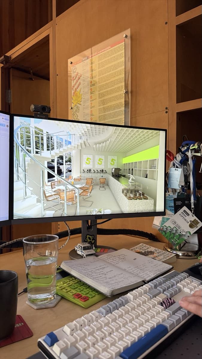 После настройки на день я всегда перехожу к рабочим задачам или звонкам с командами, причем не важно, где я. Если в Москве, то добавляется авторский надзор на объектах (в чатах он не останавливается), личные встречи с заказчиками и отбор материалов.