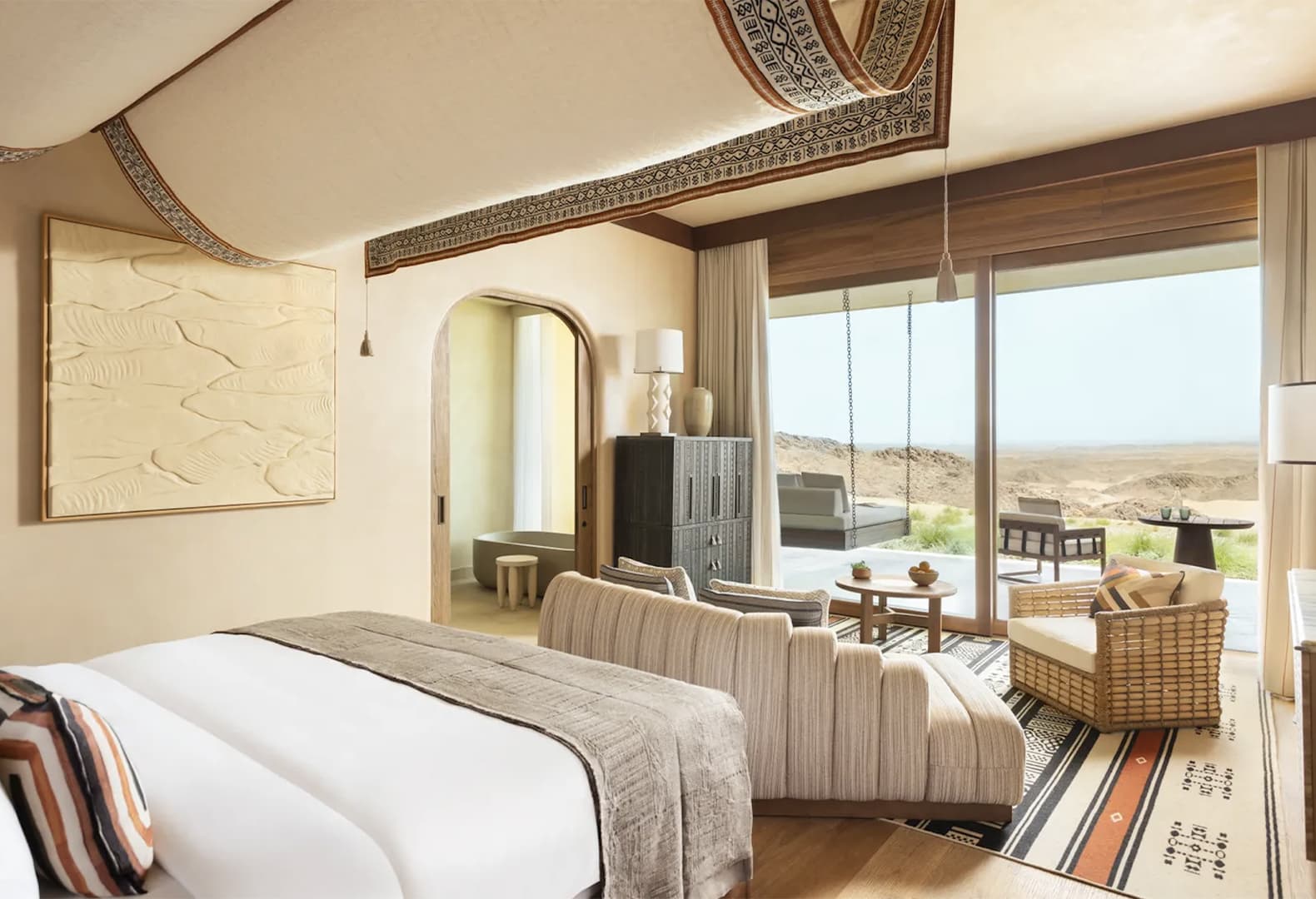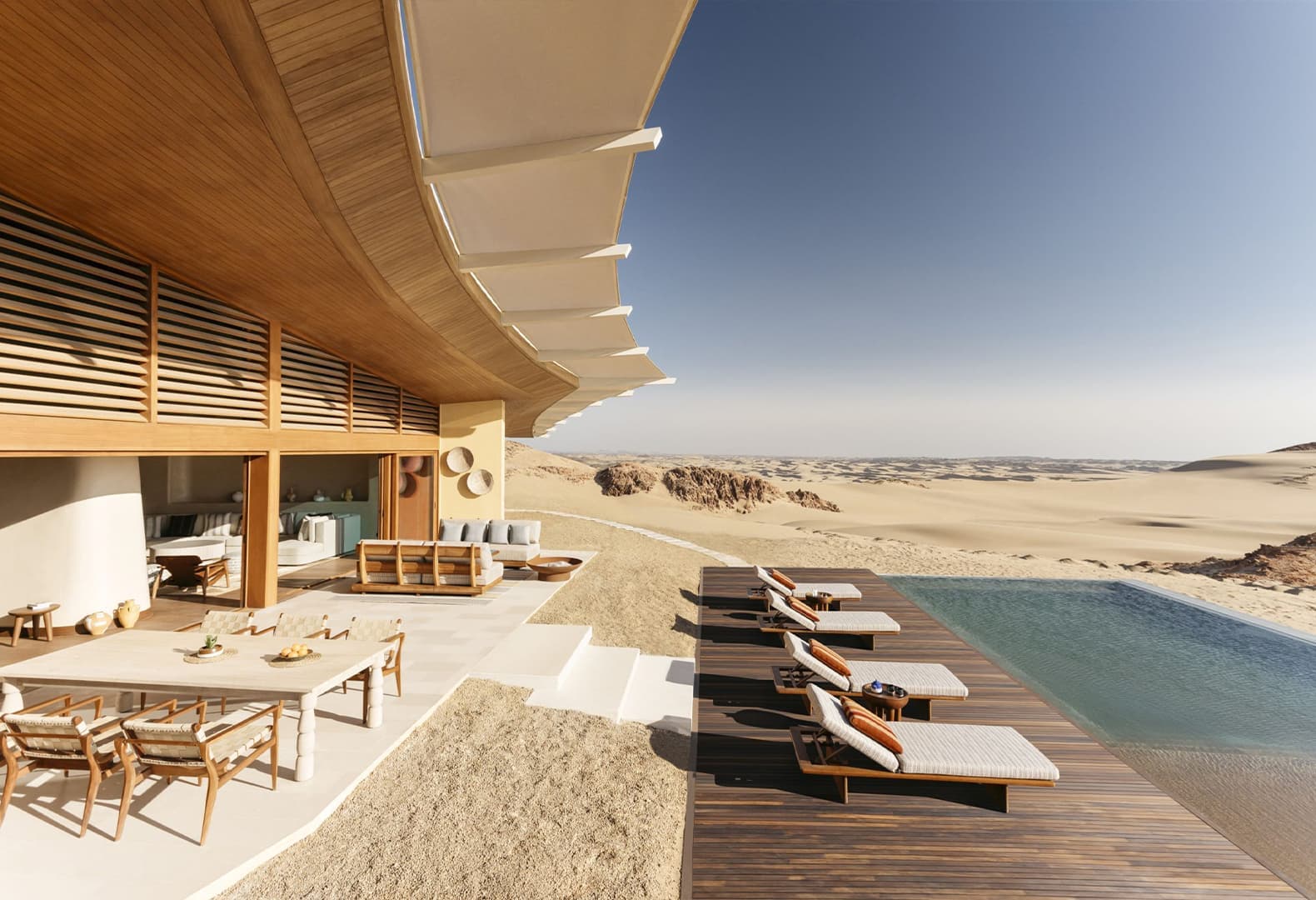 Создатели проекта Six Senses предлагают постояльцам перезагрузиться эмоционально и физически за счет микса завораживающей природы и новаторского подхода к оздоровлению организма. Его главный комплекс в Саудовской Аравии Six Senses Southern Dunes, который находится на берегу Красного моря, имеет как классические номера, так и отдельные виллы с видом на окружающие территорию песчаные дюны. Этот характерный ландшафт также выступил отправной точкой при оформлении пространств, в которых можно заметить преимущественно светлые пастельные оттенки, традиционные узоры и фактуры.