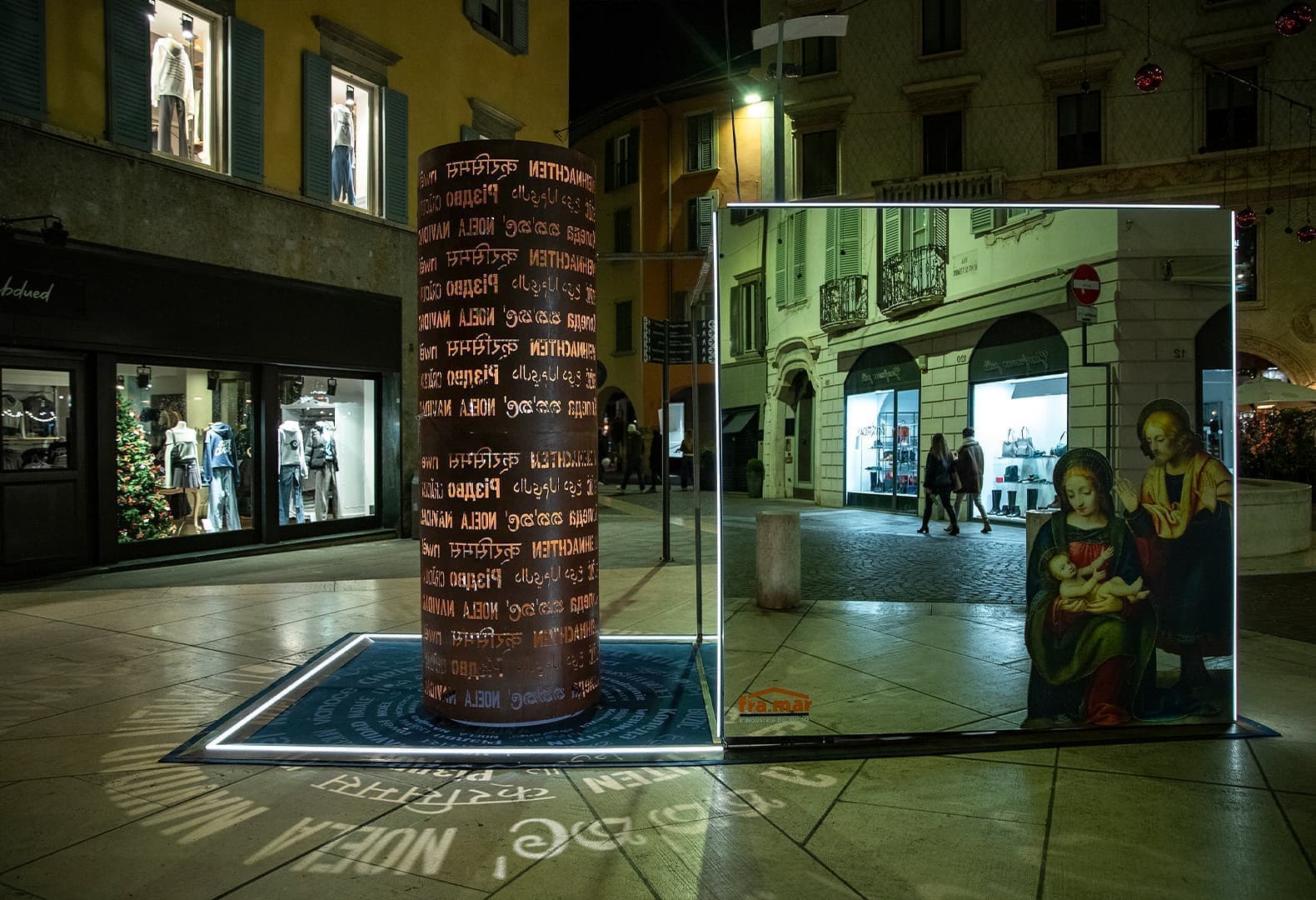 С одной стороны, интерактивная инсталляция You for Christmas обращается к традиционному библейскому сюжету, а с другой — отражает актуальную тенденцию инклюзивности. Стивен Каванья переосмысляет сцену поклонения младенцу: при этом репродукция знаменитого панно Бернардино Луини размещена на большом зеркале, с помощью которого зрители становятся равноправными героями действия. Кроме того, отражающая поверхность усиливает праздничный эффект от огней на площади Largo Rezzara.