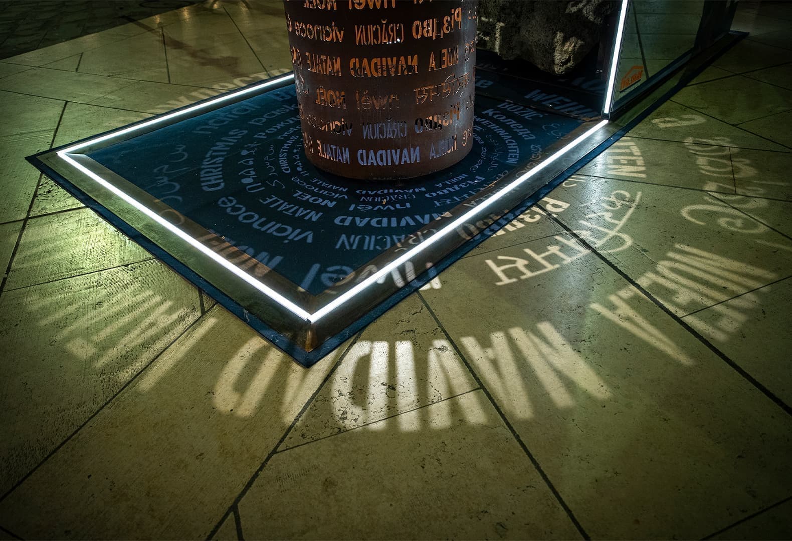 По задумке миланского художника Серджио Паппалеттеры световая скульптура представляет собой стилизованную рождественскую елку, которая загорается от прикосновения. Такое технологическое решение — поэтическая метафора, согласно которой объект собирает, а затем воспроизводит свет каждого отдельного человека. Таким образом, для работы инсталляции необходимо присутствие зрителя. Объект сформирован четырьмя треугольными конструкциями из металла, дополненными светодиодными лентами.
