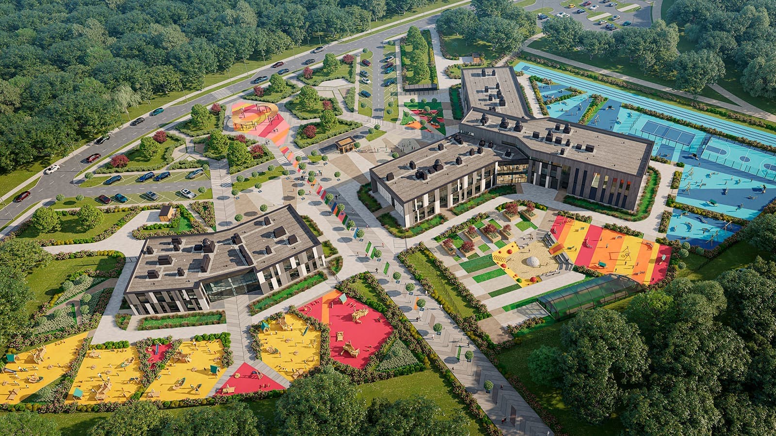Все архитектурные и инженерные решения, использованные в проекте, отвечают европейским экологическим нормам. Например, по уровню энергопотребления комплекс соответствует стандарту PASSIVHAUS, то есть расход энергии в нем снижен за счет пассивных методов энергосбережения. При таком подходе затраты на отопление снижаются в 7-10 раз, а комфорт пользователей существенно повышается за счет адекватных температур в помещениях, более высокого качества воздуха и даже лучшей, чем в традиционных здания, акустики. Для педагогов, которые целыми днями работают с детьми, последнее не менее важно, чем, например, для актеров театра, старающихся беречь связки и не перенапрягать речевой аппарат во время спектаклей.