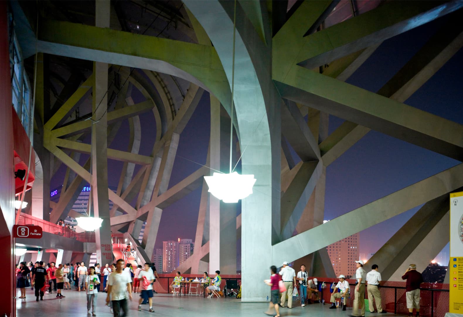 226 National Stadium, построенный по проекту швейцарского бюро Herzog & de Meuron, хоть и был задуман прежде всего как главная площадка Олимпийских игр-2008 в Пекине, но возводился с расчетом на использование и после международных соревнований. Сами архитекторы назвали стадион новым типом городского пространства, который будет формировать и стимулировать общественную жизнь в северной части китайской столицы. Для этого команда предусмотрела площади под рестораны, бары и магазины, в то время как формирующие конструкцию фасада платформы создают площадку для встреч и общения. Именно на этой переходной зоне между экстерьером и интерьером студия и сделала основной акцент в концепции. Как и планировали архитекторы, 226 National Stadium играет важную роль в общественной жизни пекинцев и после завершения Олимпиады: здесь проходят футбольные матчи и другие спортивные соревнования, а также концерты.