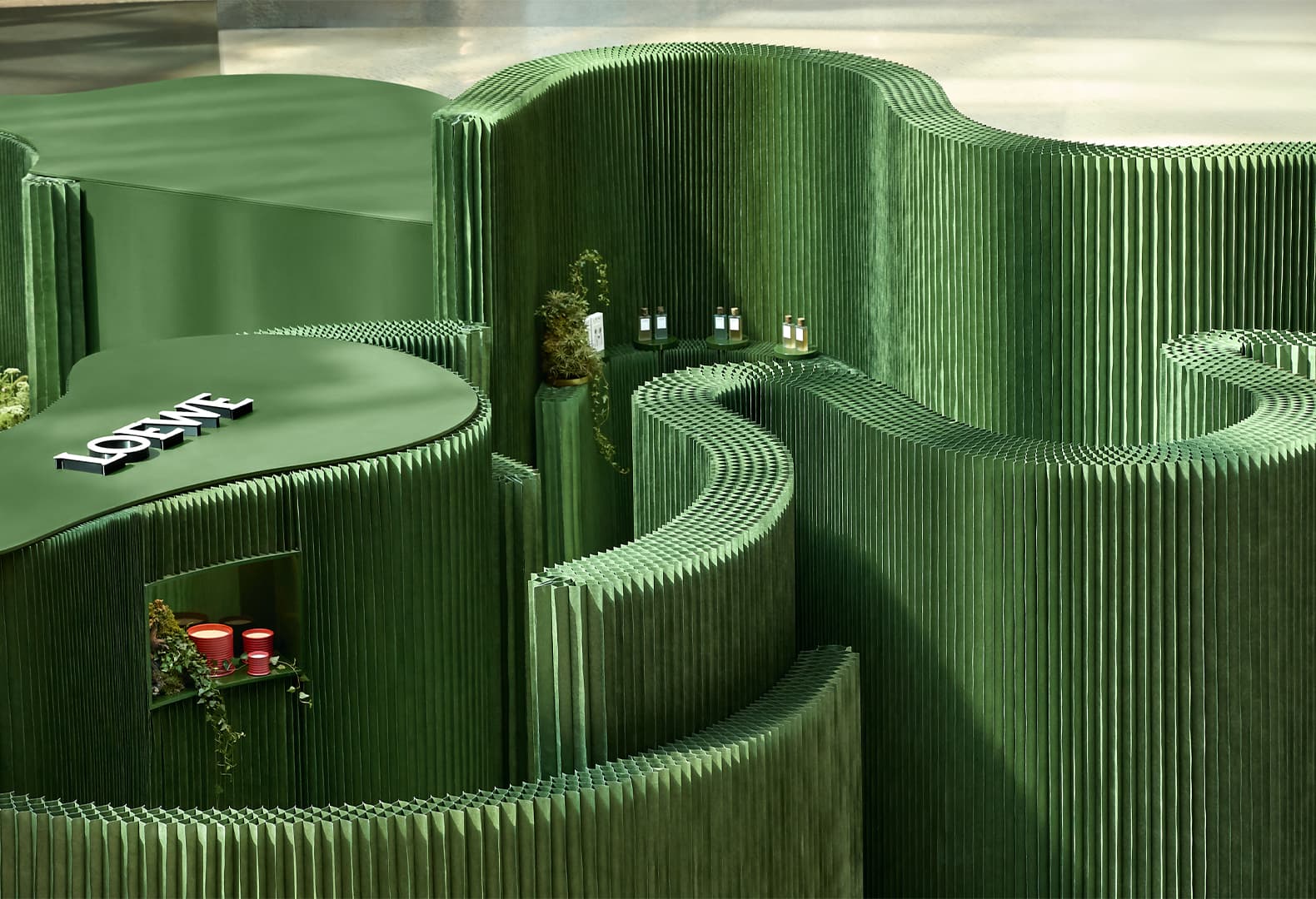 Специально для фестиваля дом LOEWE Perfumes подготовил сразу три инсталляции Crafted Garden: одну можно было увидеть на площадке Fiesta Design, вторая открылась на Площади Колумба в центре Мадрида, а третья появится на ярмарке FORMA с 4 по 8 марта. В рамках проекта команда стремилась создать иммерсивный опыт на стыке природы, ароматов и ремесла. Для проектирования ультратонкой бумажной модульной конструкции бренд пригласил канадскую студию Molo Design. Дизайнеры воплотили атмосферу непрерывно трансформирующегося фантастического сада, который приглашает гостей исследовать экспериментальную творческую вселенную бренда.