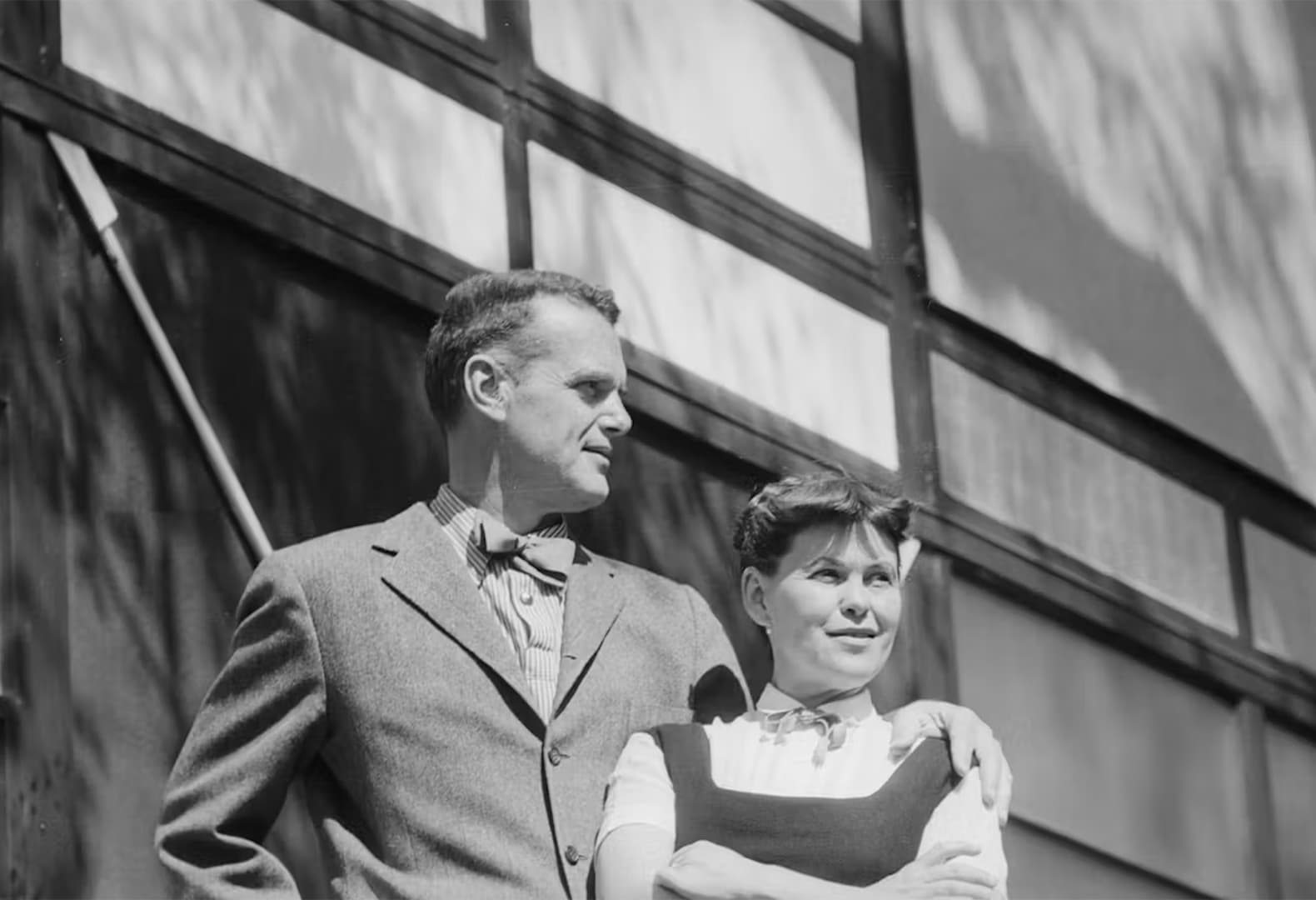 Чарльз и Рэй Имз у входа в свой дом, Eames House, около 1954 года. Фото: © Eames Office, LLC