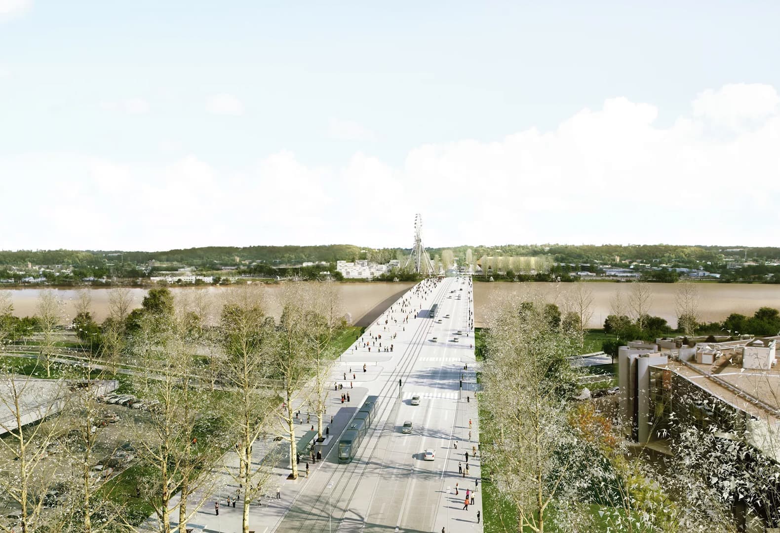 В рамках этого проекта архитекторы OMA решили переосмыслить общественную функцию и символику современного моста. Студия намеренно оставила конструкцию максимально простой с технической и эстетической точки зрения, практически примитивной: по словам команды, так мост превращается в платформу для городских событий. На Simone-Veil предусмотрены отдельные полосы движения для автомобилей, общественного транспорта и велосипедов, однако самый большой участок предназначен для пешеходов, что делает его похожим на просторный бульвар.