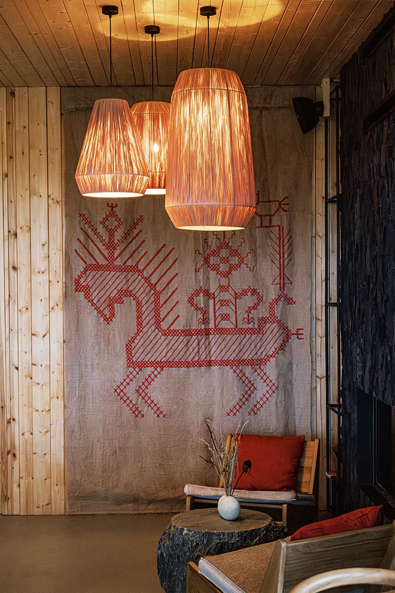 Узоры заонежской вышивки и карельские руны в элементах интерьера напоминают о традициях жителей Русского Севера.