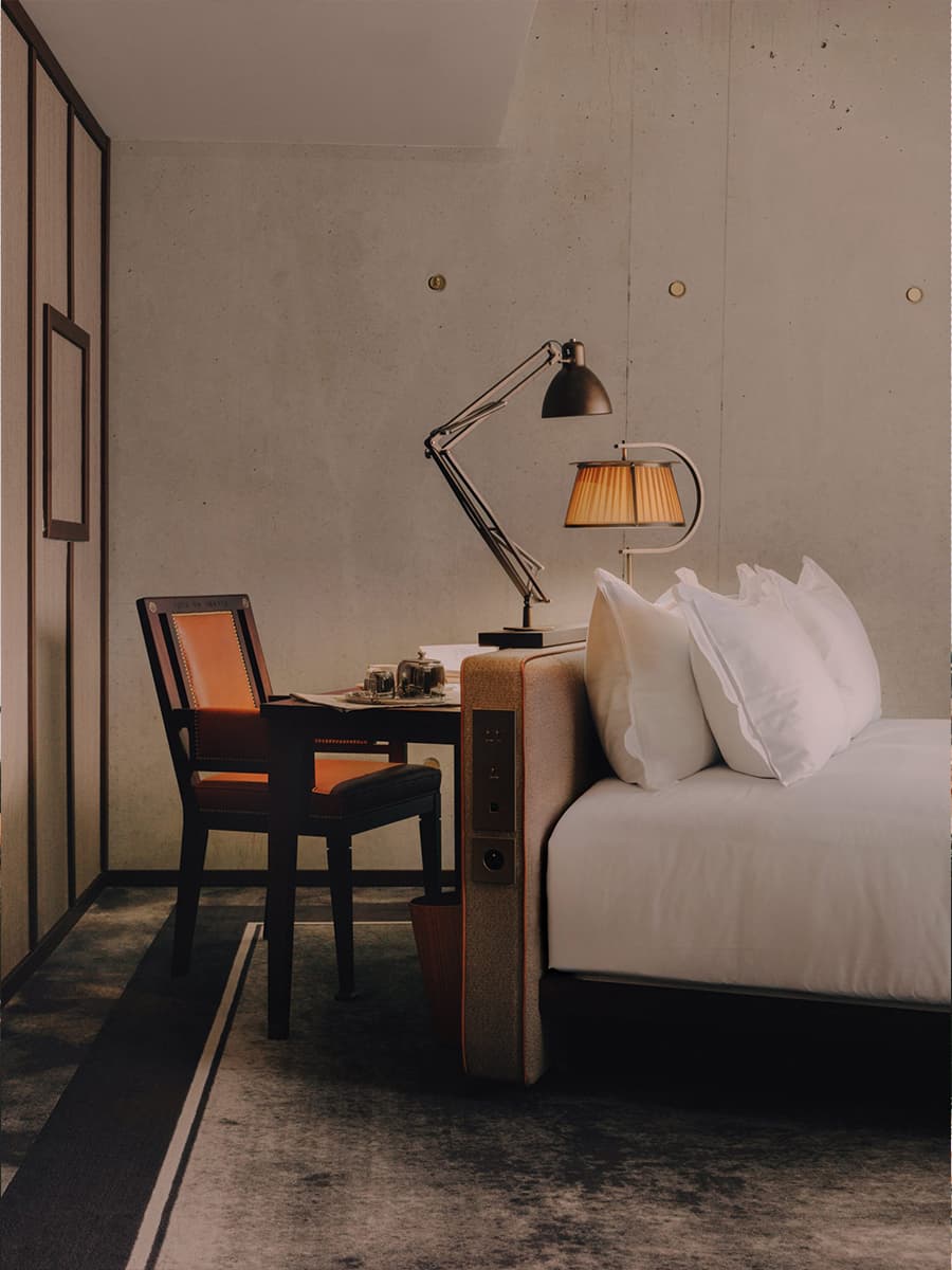 Номера оформлены с акцентом на тактильность: мраморные панели сочетаются с мягкими коврами и натуральной кожей. Комнаты наполнены деталями, которые приглашают к размышлениям и игре: от древних монет и цитат до шифра, который нужно разгадать. Эти элементы раскрывают изобретательную натуру Манфреда, в то время как стены украшают изображения из Национального архива и центра CNRS — как напоминание о его нереализованных изобретениях.