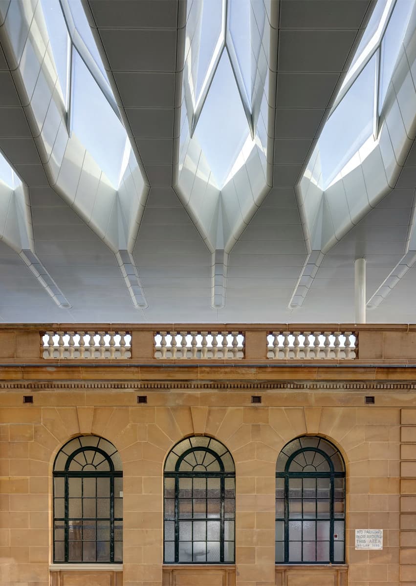 При разработке структуры студия опиралась на свой известный проект — реконструкцию вокзала Кингс-Кросс в Лондоне, завершившуюся более десяти лет назад. Как и в случае с этой работой, здесь команда решила интегрировать современную выразительную структуру в оригинальную архитектуру эдвардианской эпохи и соседствующее с ней здание из песчаника Central Electric, построенное в 1936 году.