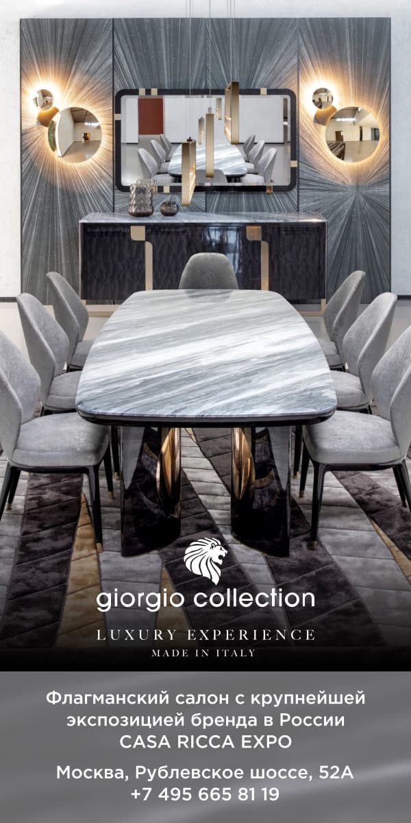 Предметы из коллекции Mirage гармонично дополняют не только друг друга, но и остальные линейки мебели и аксессуаров Giorgio Collection. Насладиться творениями итальянского бренда можно во флагманском монобрендовом салоне в интерьерном центре Casa Ricca Expo — здесь найдутся и новинки, и бестселлеры компании.