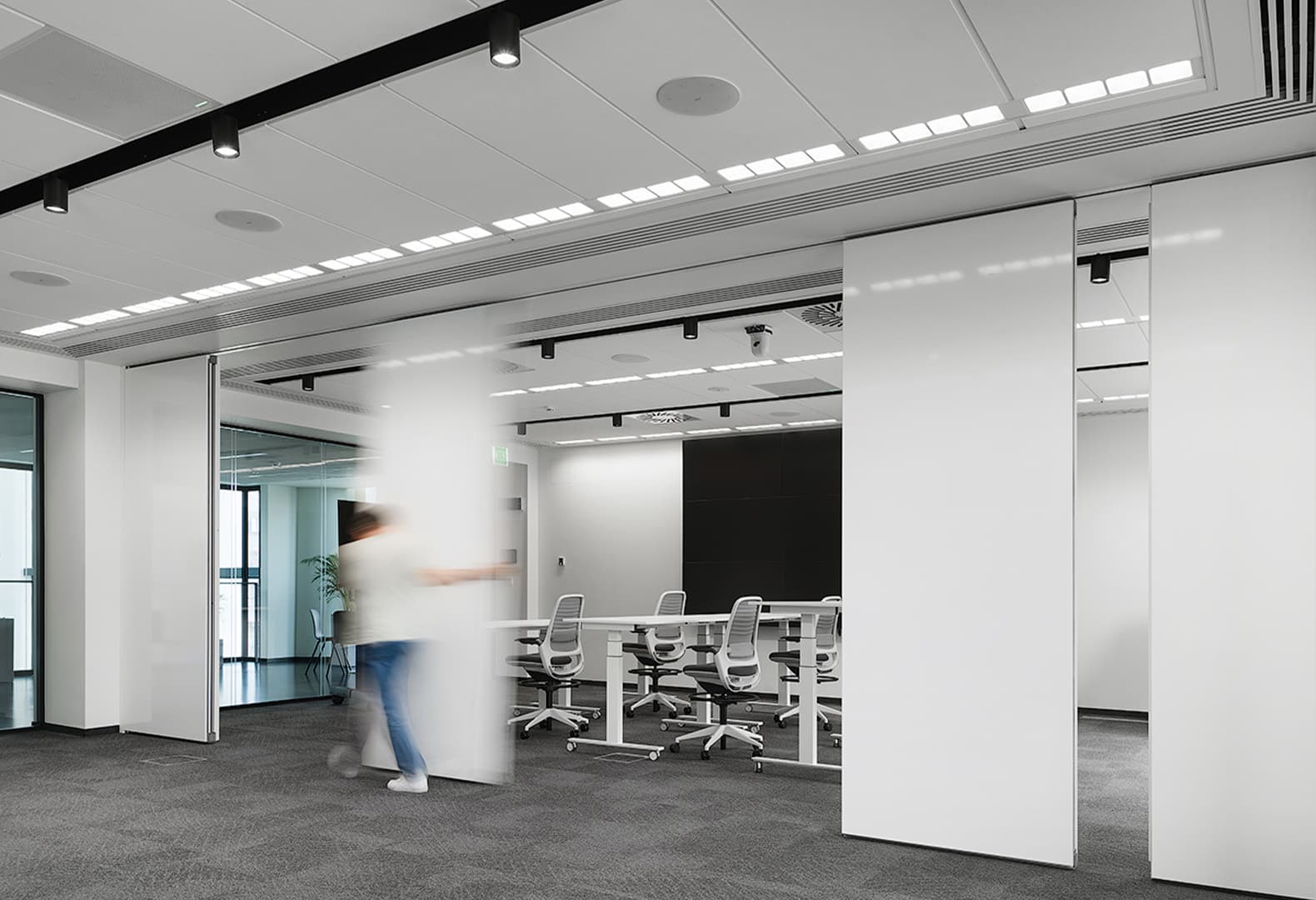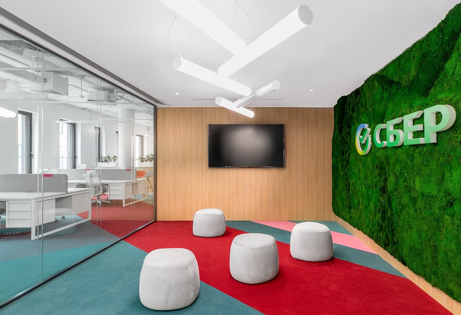 Основные зоны офиса по-прежнему составляют индивидуальные рабочие места с комфортными акустическими и эргономическими условиями для концентрации на текущих задачах. При этом зумеры особенно ценят возможности для саморазвития, совершенствования имеющихся навыков и ощущения себя частью динамичной среды. Поэтому принципиальное значение здесь имеет баланс между уединенными рабочими местами и учебными пространствами для активного взаимодействия, которые в то же время позволяют свести к минимуму шум и различные отвлекающие факторы. В штаб-квартире СБЕР это реализовано через мультиформатные образовательные пространства. Здесь есть зоны для коллективного обучения и лекций, переговорные для коуч-сессий и воркшопов, трансформируемые конференц-залы.