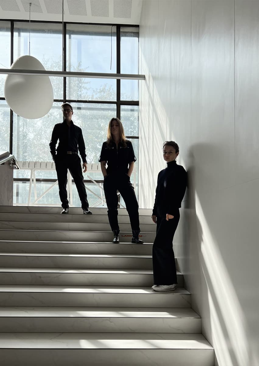Сейчас в бюро работает двенадцать человек. Коллектив небольшой и гибкий, без жестких границ между ролями. У нас есть структура, но она живая: кто-то ведет проект, кто-то визуализирует, при этом каждый может пробовать себя в чем-то другом. В административных вопросах есть иерархия, в творчестве — нет. Каждый человек влияет на результат, и при смене даже одного участника меняется все остальное: темп, ритм, интонация проектов.