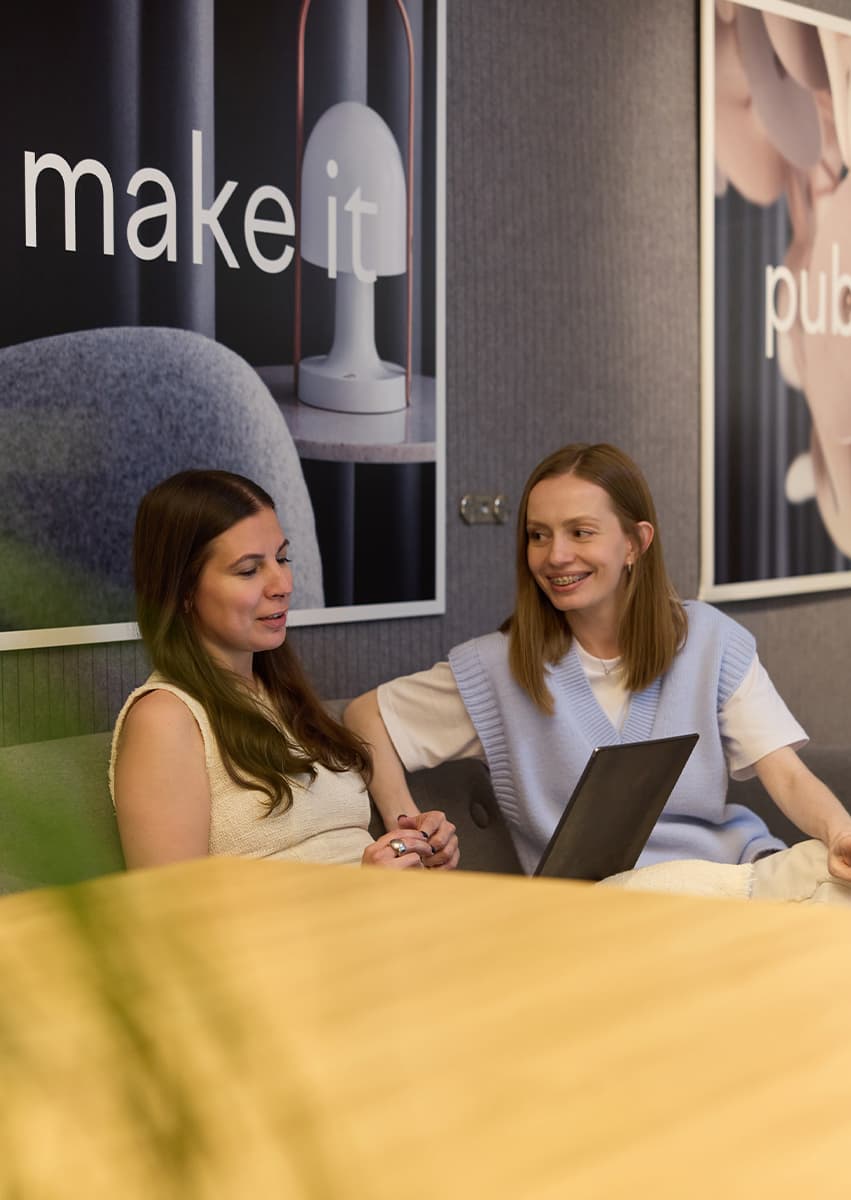 Аня Саркисьянц: С первых дней существования студии каждый сотрудник занят своим делом, и при этом все остаются частью общего целого. Это такой принцип единства противоположностей: каждый фокусируется на своей экспертизе, но все работают синхронно и понимают, что происходит на каждом этапе.