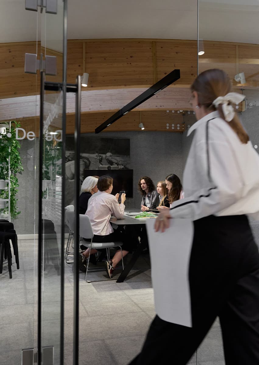 Мы очень хорошо понимаем, как работают наши решения, потому что сами живем в таком пространстве. Оно задает ритм, стиль взаимодействия, даже тон коммуникации внутри команды. Мы продумали сценарии использования каждого метра: где удобно сосредоточиться, где уместно обсудить идеи, а где — просто перевести дух с чашкой кофе. Такой подход помогает тестировать гипотезы в реальном времени и честно видеть, какие решения действительно работают и на людей, и на бизнес.